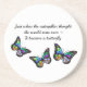 Katerpelare, kokonger och fjäril. Övergångens skönhet och . Slamflugan citerar: "Just när vattenpelaren trodde att världen var över - det blev en fjärilsmur", underlägg sandsten i hemmet - inspirerande och uppmuntrande. Smittcitattecken - stimulans Underlägg.