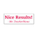 Den här positiva utformningen av gummi frimärke innehåller det motiverande budskapet "Niceresultat!" och en anpassad lärare i namn. Det skulle kunna användas av en lärare, lärare eller en lärare när de markerar uppdrag för att erkänna att ett student har gjort bra ifrån sig.