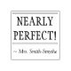 Den här inspirerande utformningen av gummi frimärke innehåller det motiverade budskapet "NEARLY PERFEKT!" och en personlig lärare i namn. Det skulle kunna användas av en skollärare, lärare, instruktör eller lärare när de markerar uppdrag för att bekräfta att student har utfört ett underbart arbete.