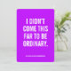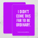 Ut med varje ord. Detta kraftfulla kort för rosa innehåller det djärva budskapet: "Jag har inte kom så här långt för att vara vanlig." - en påminnelse om perfekten att jaga drömmar utan ursäkt. Oavsett om du är otrogen mot en student, firar en milstolpe eller överraskar en vän som är på väg upp i livet, är det här anpassningsbarna en oförglömlig motivationell gåva. Anpassa den inuti med ditt eget budskap för en verkligt meningsfull beröring. Perfekt för: Studenten | Karriärmilstolpar | Girlchefens motivation | Självgående gåvor från kärlek | Främjande av vänner eller döttrar