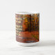 Motivering, uppmuntrande citat kaffe mugg av ett foto av ett fantastiskt väg i skogen från skulpturen Sten i Hebron, New Hampshire, på hösten. Fläckande löv i orange och guldhuvar. Detta citat är en lektion i dagliga uttalanden och hur vi genom att tala till oss själva på ett positivt sätt kommer att få mer bra sak. "Som ett enda fotsteg kommer inte väg att bli ett på jorden, så en enda tanke kommer inte att bli en väg i tankarna. För att göra en djup fysisk väg går vi om och om igen. För att göra en djup mental väg måste vi tänka över och över den typ av tankar vi vill dominera våra liv." - Henry David Thoreau.