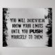 Motiveringsofferten Poster och skriver ut. Du kommer aldrig att känna dina gränser förrän du trycker dig på dig själv med silver faux metallisk bakgrund och grymge kant. Underbart för alla områden i ditt liv. Fitness, workouts, löpning, arbete, självbild, sport och vardagsliv.