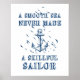 "Ett fridfullt hav har aldrig gjort ett skickligt sjömanscitat, inspirerande, motiverande citat poster med ankarskylt och fiskmåsar i blått och vitt.