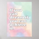 Denna motiverande poster är designad för att inspirera och lyfta, och uppmuntra ett tänkesätt som är inriktat på tillväxt och uthållighet. Perfekt för vilket utrymme som helst är en daglig påminnelse om att tro på dig själv och behållans flytta framåt. Ge miljön en positiv inställning med denna tidlösa biet av uppmuntran.