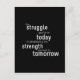 "Kampen du är i dag utvecklar den styrka du behöver för morgondagen." Svart och vitt vykort för inspirationell och motiv typografisk design.