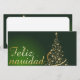 Motivo de Navidad verde con árbol de Navidad hecho de estrellas doradas con las palabras Feliz Navidad en alemán, en español, en francés, en inglés on Tackyou Card (liggande)