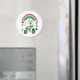 En söt hund på en motorcykel omgiven av en färgstark regnbåge och stjärnor, design för barn