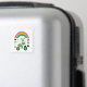 En söt hund på en motorcykel omgiven av en färgstark regnbåge och stjärnor, design för barn
