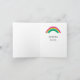 En söt hund på en motorcykel omgiven av en färgstark regnbåge och stjärnor med skräddarsydd/personlig text på baksidan. Design för barn.