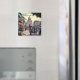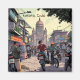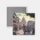 Tecknad bok stil ai illustration av motorcyklar och kort i centrala Kolkata, Indien Parked Motorcyklar och parkerade motorkort. En magnet med en illustration av en fullsatt gata i städerna med byggnad, restauranger, butiker och människor på deras motorcyklar.