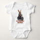 Rev up your little one's style with the Motorbunny Madness baby bodysuit. This adorable infant bodysuit features a hilarious cartoon bunny rocking sunglasses, a cool leather jacket, and cruising on a badass orange motorcycle with the bold text "MOTORBUNNY MADNESS" printed below in vibrant rust-red lettering. Perfect for baby boys or girls, it's the ultimate funny biker-themed outfit that turns heads at playdates, family rides, or baby showers.