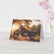Det här födelsedagskortet har en motorcykel i land vid soluppgången.