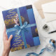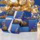 Motorcykel i guld med Julgran och stjärnornas motiv på en ljusblå övertoningsbakgrund för biker.