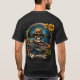 Den här T-shirt-designen har en futuristiska-duschcykel med en elegant, aerodynamisk design och gömt teknik, som visas på en roterande plattform mot en solid ljusblå bakgrund, och belyser dess nyskapande utformning inslag
