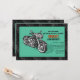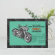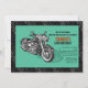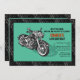 En manlig inbjudan för den gris-enthusiasten som firar en födelsedag. Den svarta och gråa däckmönsterbakgrunden är överlagd med en tealpanel med en motorcykel.
