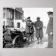 Bilden visar två manar, en förmodligen afrikansk amerikan, och en polisman bredvid en motorcykel (eller kanske två motorcyklar) med en sidvagn, nära USA Huvudstad. En man håller en räv. Titeln på LOC säger "Geo". M. Grönt". National Photo Company-fotot 1918-1920. Originalsubstrat för LOC: negativt glas.