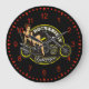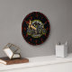 Mycket coola tittar motorcykel med ett pinup babe i bakgrundens väggklocka. Elektriskt rött färg-tema. Underbar gåva till bikerna i ditt liv.