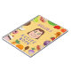Teckning om en tecknad flicka med mat. Text kan anpassas och annan ansikte finns i avsnittet Personer/gäng.