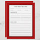 Dubbla receptsida designad för att koordinera med en matchande 3 ring-receptorganisatörsbindare. En enkel, minimalistisk utformning i en modern röd, svart och vit palett i färg, med titeln huvudsaklig maträtt med serveringsinformation, prep-tid, tillagningstid, ingredienser och riktningar. All information du behöver för dina huvudsakliga matrecept på framsidan och baksidan. Designad som en redigerbar mall och som visas med de huvudsakliga diskrecepten kan du anpassa med hjälp av fält eller använda meddelandeknappen för att kontakta designern för hjälp.