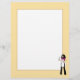 Ta fram sidhuvud med illustrerad gräns och teckning på en tjej som har en apron stående!