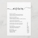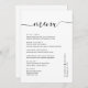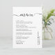 Chicens bröllopsmiddagsmeny med "meny" i ett snyggtens kalligrafiskript med dekorationer, din anpassade meny i enkel modern typografi, ditt första namn gått med av ett hjärta och ditt mottagningsdatum.