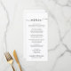 Modern och chicens bröllopsmeny med "meny" i ett calligraphy-skript med dekorationer, din anpassade meny i enkel typografi, ditt första namn gått med av ett hjärta och ditt mottagningsdatum.
