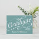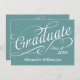 Blå bakgrund med vit text med snabbt skript "student" och ett anpassningsbar underbart för student att tillkännage den stora bedriften. Fira på baksidan med anpassningsbarnas mottagningstext till dina gäster. All design Copyright © www.CustomInvitesOnline.com