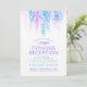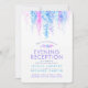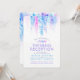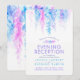 Blå blommor av vinrstyp botaniska vattenfärger målning konst lodrät kvällsinbjudningar. Fin blommigt konst i lös vattenfärgsdesign perfekt för en kvällsfärgskonst i söt bröllopsfester av blått, lila och rosa. © Original vattencolor art and design by Sarah Trett www.sarahtrett.com for www.mylittleedenweddings.com