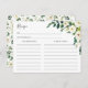Receptkort för grönt och elfenbensfärgstryck som matchar eleganten Alabaster blommigt inbjudningskort för möhippa.