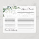 Be gästerna vid möhippan att sitt favoritrecept med briden till att bli med det här enkla "Speciella receptet". Den här designen har vattenfärgen eukalyptus grey och det finns koordinerande artiklar i vår butik.