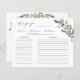 Dessa vackra recept på Möhippa är ett underbart sätt att bidra till att börja med den brida som ska samlas. Lägg ett recept tillsammans med Inbjudningskort för möhippa så att gästerna kan skriva sina favoritrecept. Den här utformningen har en vattenfärg på eukalyptus foliage och lila lavender-blommor