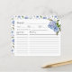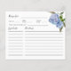 Rustiskt recept-kort för din blommigt tema möhippa med vattenfärgstryck som illustrerar den blå peonin med grön energi. Be dina gäster fylla i receptkortet och ta dem till möhippan eller möhippan. Perfekt för en vår- eller sommardusch.