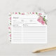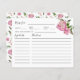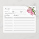 Rustiskt recept-kort för din blommigt tema möhippa med vattenfärgstryck som illustrerar rosa med grönt. Be dina gäster fylla i receptkortet och ta dem till möhippan eller möhippan. Perfekt för en vår- eller sommardusch.