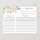 Ta emot kortets perfekt så att dina bröllop-/möhippa-gäster kan fylla i briden. Enkel utformning med rosa blommar av körsbär och vattenfärgsgrönt löv.