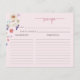 Låt din Speciella Blommar med Rosa Möhippa Recept Card! Det här receptkortet har fantastiska, handmålade vattenfärgade blommigtar i nyanser av djup lila, dammig blått och rosa med sage grey. Vare sig du är värd för en trädgård party eller en mysigt, intim samling, kommer det här vackra receptkortet att ge dig en speciell charm till evenemanget. Sök efter koordinationsprodukter i Möhippan Watercolor Wildblomme Tea Party.