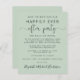 Budgetvänlig resa grönt spara datum meddelande för en mottagning eller party för att fira er anslutning eller bröllop. "Spara datum för vår lyckligtvis allt efter Party" skrivs i enkel typografi och ett elegant med dekorationer. Anpassa meddelandet från bröllop och lägg till party eller mottagningen spara datuminformationen och namn i ett namnteckning skript. På andra sidan lägger du till namn och bröllop och data för mottagande.