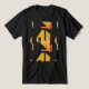 En utformning av geometriska former och linjer visas i mönstrade nyanser av fläckig orange-guld. Bild här på en svart Bella+Canvas Tri-blend t-shirt, med annat stilar och färg tillgängligt. Med inspiration från den amerikanska och sydvästra konstens stil, samt modern abstrakt och stamkonst, ger designen en färgstark, festlig, konstnärlig kvalitet som ett mångsidigt och snyggt komplement till avslappnaden och den dagliga bäran (oavsett om det är hemma, socialiserat med vänner, sport eller om man springer omkring i stan). Tröskans design som "bärkraftig konst" ger också en känsla av ditt individualiserade stil, vilket bidrar till känslan av att vara "tillsammans" och kreativ i dina personliga val.