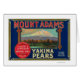 Mount Adams Pear Låda LabelYakima, WA Hälsningskort