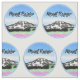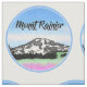 En svartvit illustration av berget Rainier och Jackson Hål dalen. Sjö och himlar skapar ett dramatiskt bergslandskap.