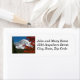 Returetiketter för dina kuvert som innehåller en säsong-fotobild av berget Rainier och fiery, höst löv i nationalparken. Anpassa etiketterna genom att redigera text och ersätta med egna namn och adress.