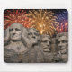 The presidents on Mount Rushmore are surrounded by fireworks, while George Washington is covering his ears