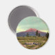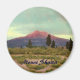 Vintage bild från 1939 på Mount Shasta och det kaliforniska landskapet runt omkring det trycktes om på denna magnet.