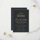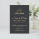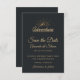 Ett bröllop spara datum-kort med guld-färgad som illustration på en svart-grått-bakgrund. Designad med en illustration av ett berg där sol strålar lyser utåt. Typografi säger: Äventyr utforskar drömupptäckten.