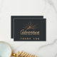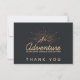 Ett tackkort med en illustration av färgaden guld på en svart grått-bakgrund. Designad med en illustration av ett berg där sol strålar lyser utåt. Typografi säger: Äventyr utforskar drömupptäckten.