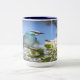 Ett vackert bergsområde Bluebird sitta på ett blomstrande gren täcker detta underbara kopp. Plocka stil. Perfekt för vilken fågel som helst älskare.