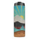 Ett vackert landskap med ett unikt struktur som visar ett bergslandskap med soluppgång.