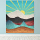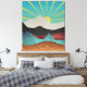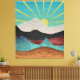 Ett vackert landskap med ett unikt struktur som visar ett bergslandskap med soluppgång.