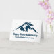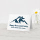 Ett coolt bergskedje-fastighetsbolag kort för en mäklare belägen i en bergig stad eller ort. Ditt meddelande är skrivet i marinblå skrift under huset bland bergen. Bra marknadsföringspostkort för en bergstopp byggare.