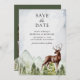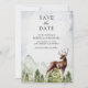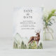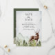 Akta dina gäster med elegant bröllop Spara datumet med ett vackert hjort, rustiskt gräs träd och berg i bakgrunden. Lägg bara till din händelseinformation på den här lättåtkomliga mallen och lägg till det här kortet med ditt favoritfoto för att göra det till ett slags Spara datumkort.