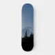 En modern bild av ett berg och en skog med en blå övertoning visas på detta unika skateboard-däck.
